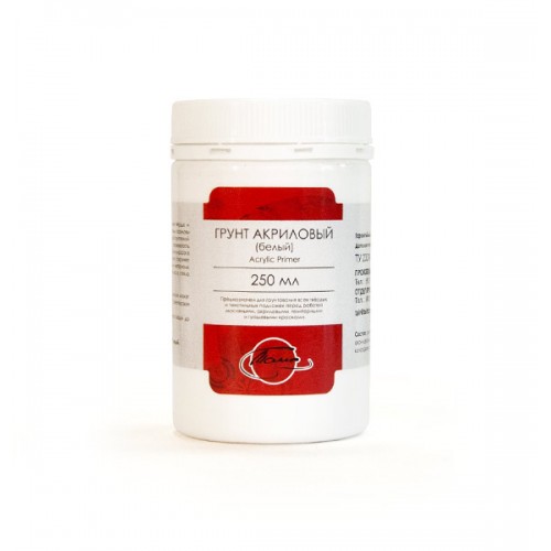 Создан на основе экологически чистых компонентов акриловой дисперсии. Предназначен для грунтования холста, дерева, картона. Обладает повышенной адгезией и создает прочный несмываемый подготовительный слой перед нанесением масляных, акриловых, темперных и гуашевых красок. Предлагается в трех цветах, для создания колерованной подложки. Черный грунт придаст картинам с использованием прозрачных красок, глубину, выразительность и насыщенность.